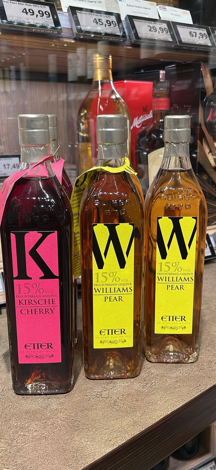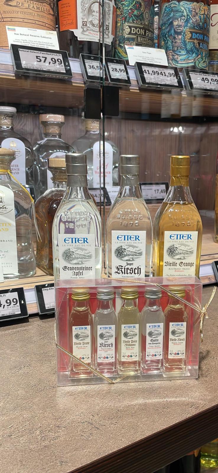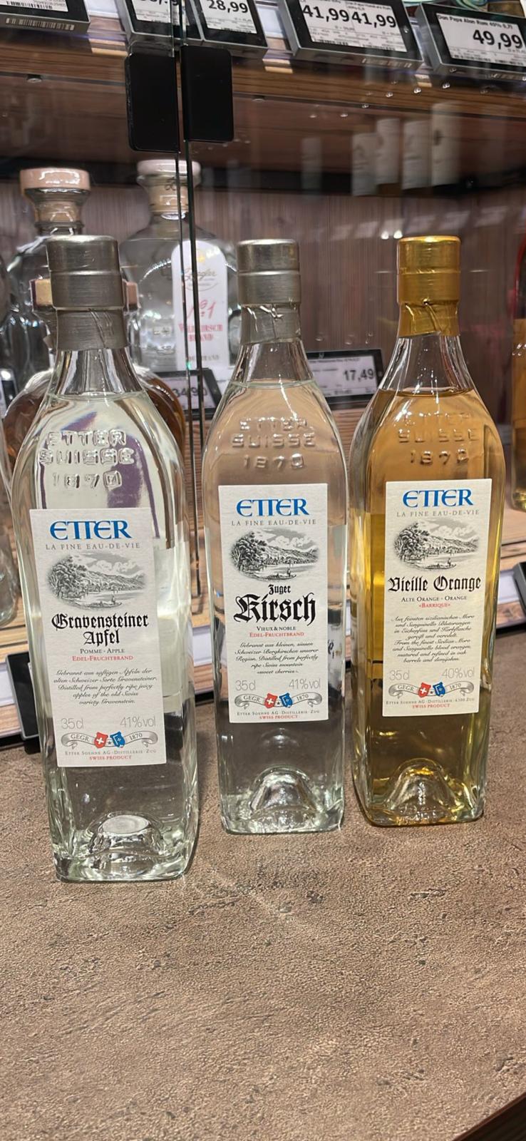 Die Vielfalt der Produkte zeigt die Leidenschaft von ETTER: fruchtige Liqueure der New Generation, saisonale Spezialitäten wie der Weihnachtspflümli-Liqueur, der edle Etter Zuger Kirsch oder der charakterstarke JOHNETT Swiss Single Malt Whisky.